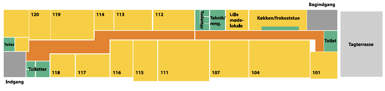 OBS! Hold musen over de grønne eller røde prikker på plantegning for mere info